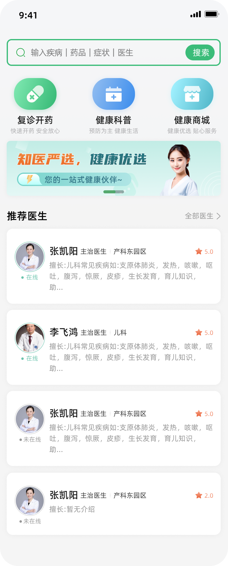 在线诊疗:处方购药、健康指导、基层落地,线下基层就近落地