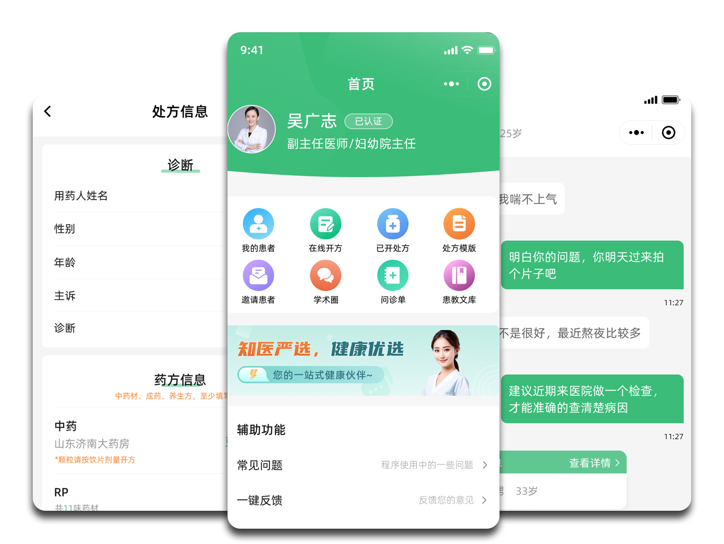 在线诊室:患者获取、运营中心、线上药房,助医生摆脱时间与空间限制在线回答患者咨询,解答患者疑惑,形成良好医患互动